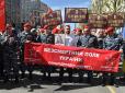 Чоловік пояснив, що традиційно 9 травня одягає цю футболку, оскільки вважає, що саме ця символіка перемогла. Чоловік, що представився Сергієм Вороніним, був одягнений у червону футболку з написом СССР та комуністичною символікою. На футболку чоловік од...